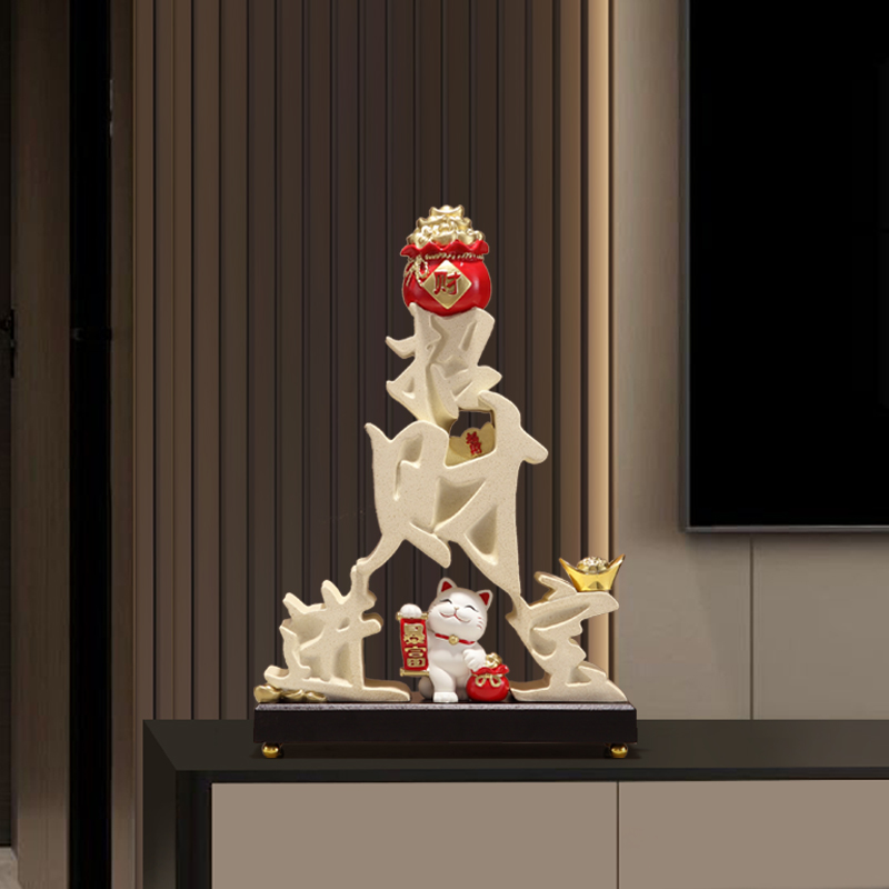 财源滚滚招财猫摆件高级感办公室前台电视酒柜装饰旺宅开业乔迁礼