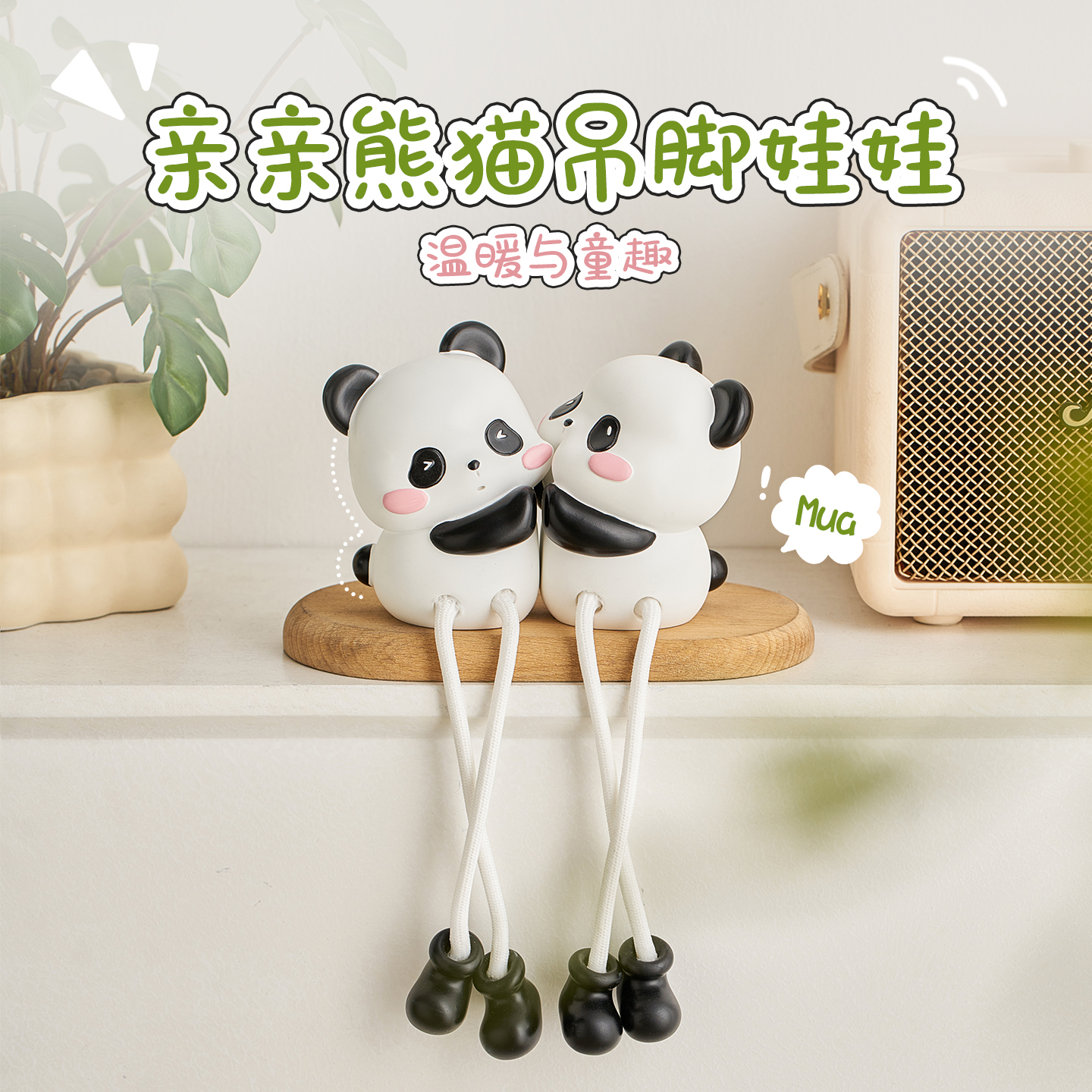 可爱熊猫吊脚娃娃摆件客厅玄关洞洞板电视柜开放格坐姿公仔装饰品