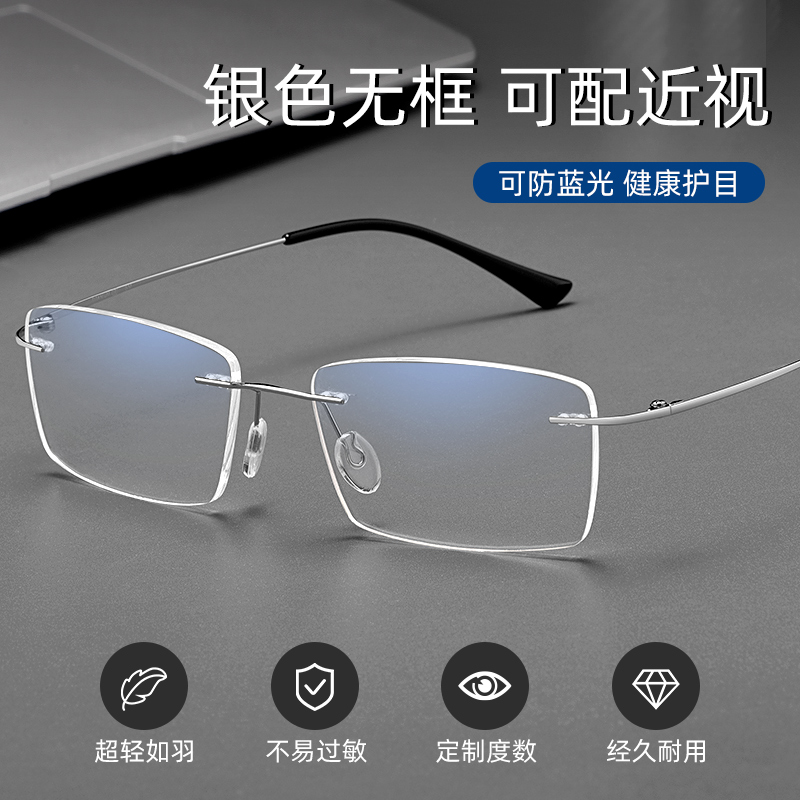 时尚超轻无框眼镜男近视可配度数纯钛无边框金丝边β钛眼镜框男款