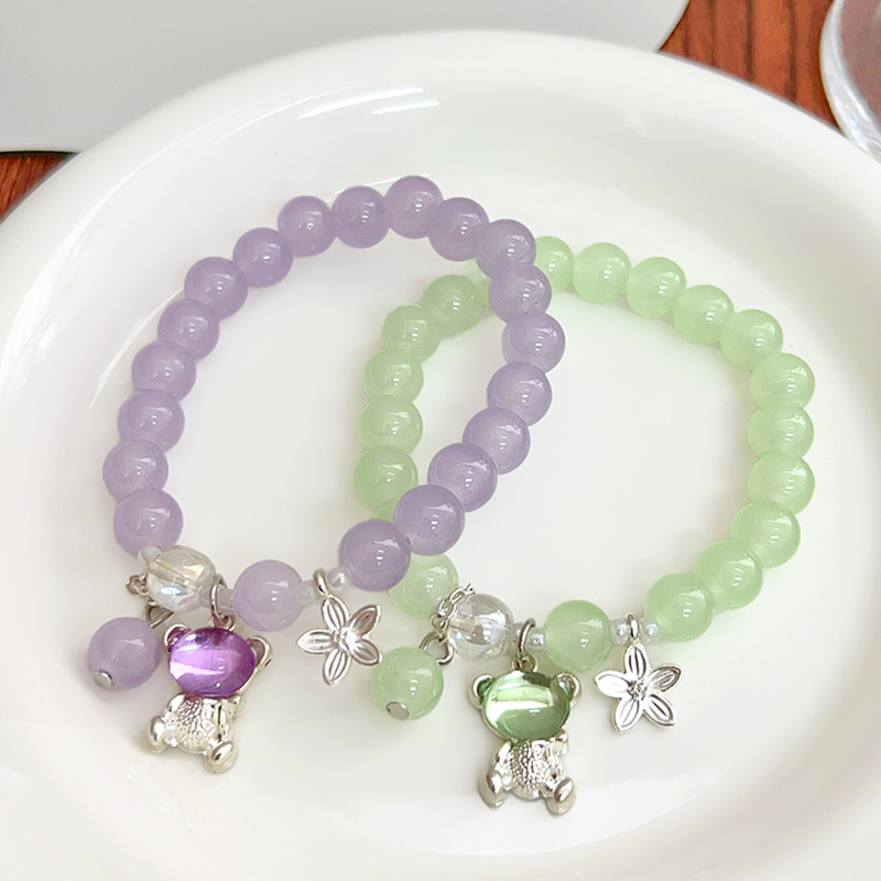 卡通水晶小熊花朵串珠手链女款ins小众精致学生闺蜜手串礼物配饰