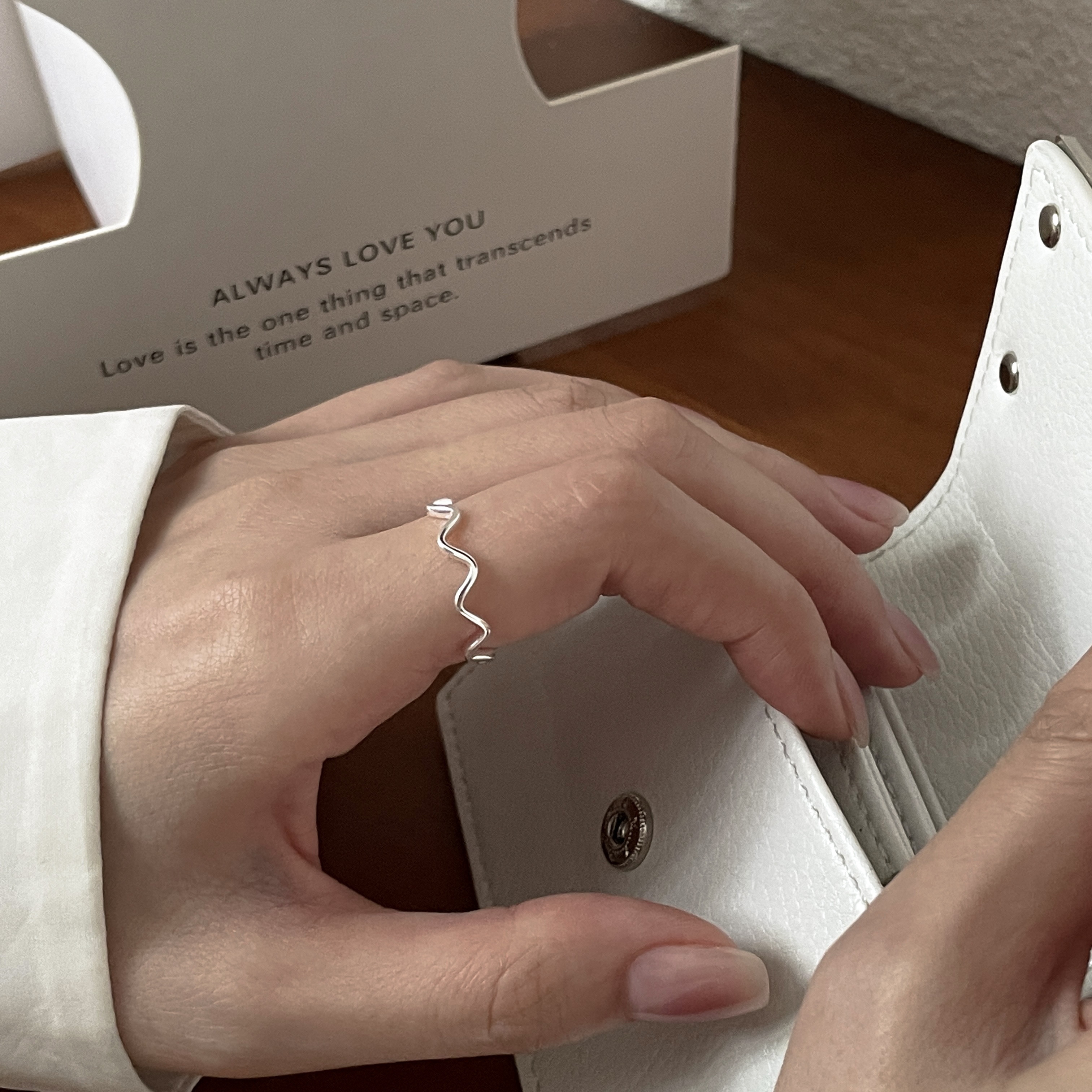 s925纯银珍珠戒指女高级轻奢小众精致波浪开口指环食指戒银饰品男