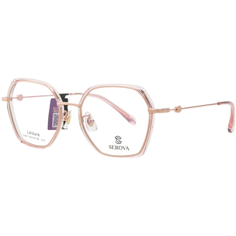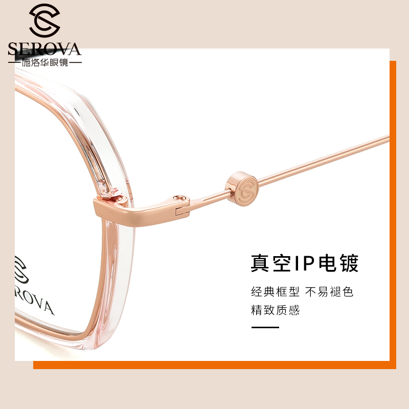 施洛华眼镜框金属加板材女韩版潮学生大框近视眼镜粉色镜架SL611