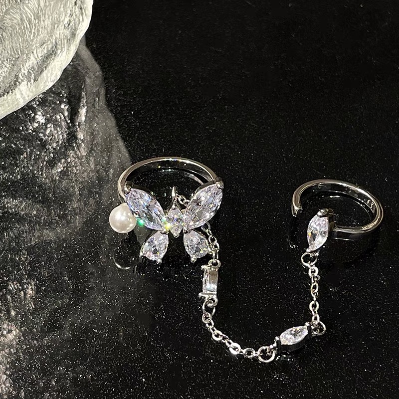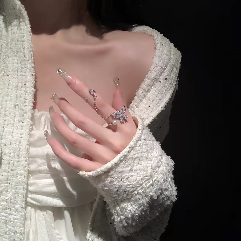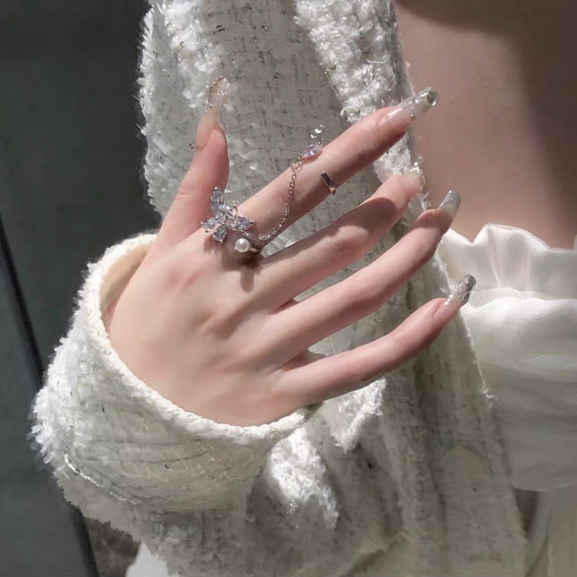 高级感超仙气质珍珠蝴蝶戒指女小众精致轻奢食指戒冷淡风ins指环