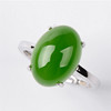 天然碧玉戒指女S925纯银菠菜绿色宝石和田玉活口食指戒子日韩简约