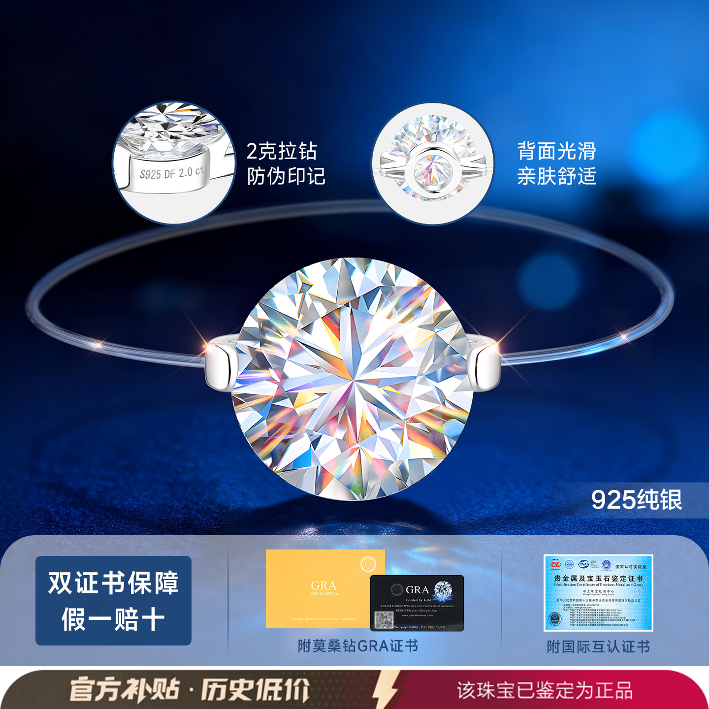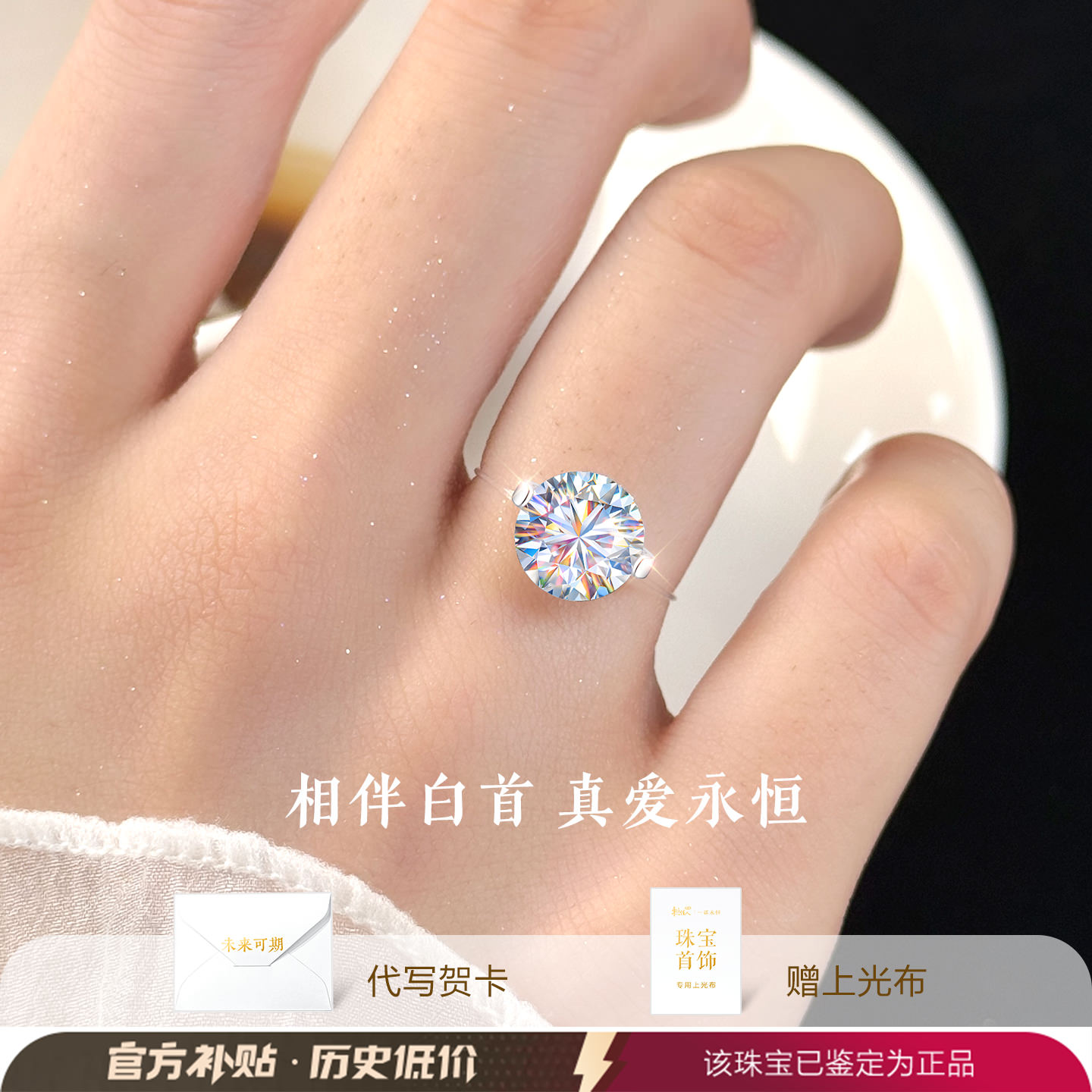 【正版】女款人鱼之泪纯银戒指隐形透明线鱼线2克拉莫桑石莫桑钻