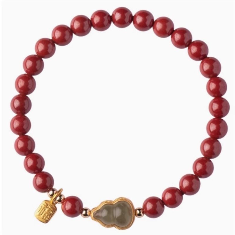 朱砂手串正品紫金砂和田玉葫芦四叶草转运珠红手链龙年本命年礼物