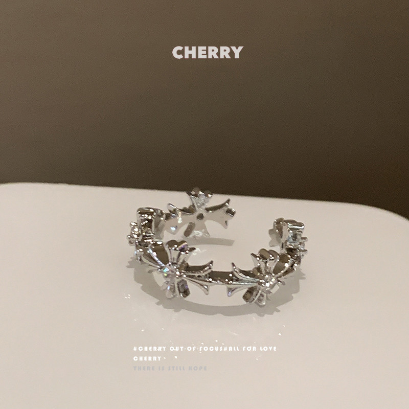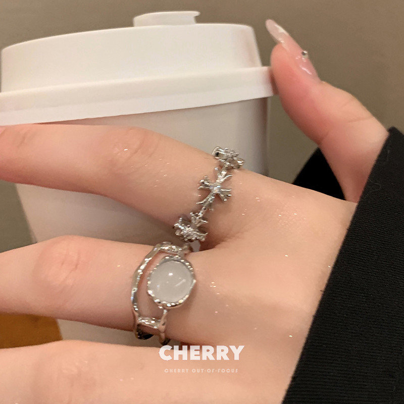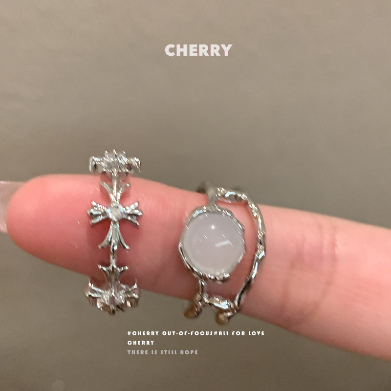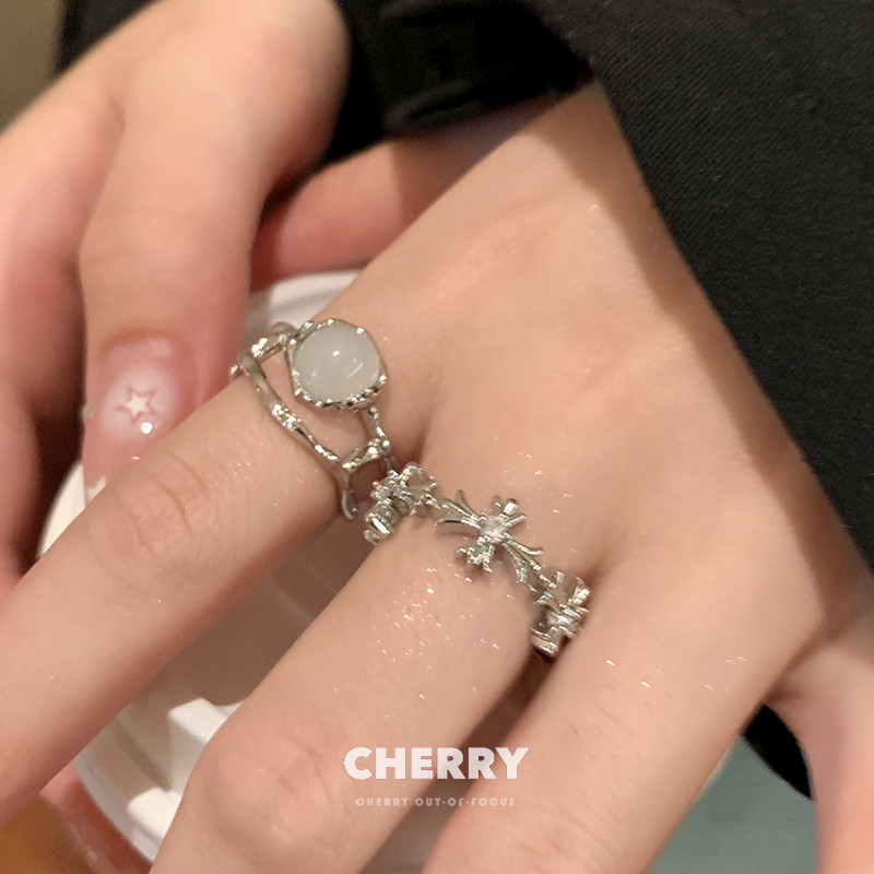 清冷感~月光石十字架锆石开口戒指女ins小众设计感食指戒个性指环