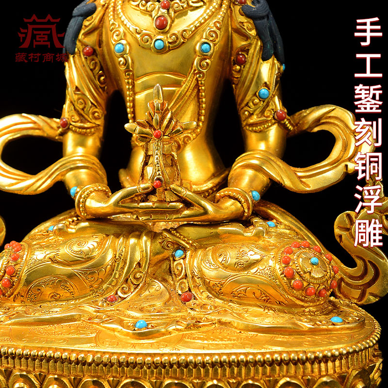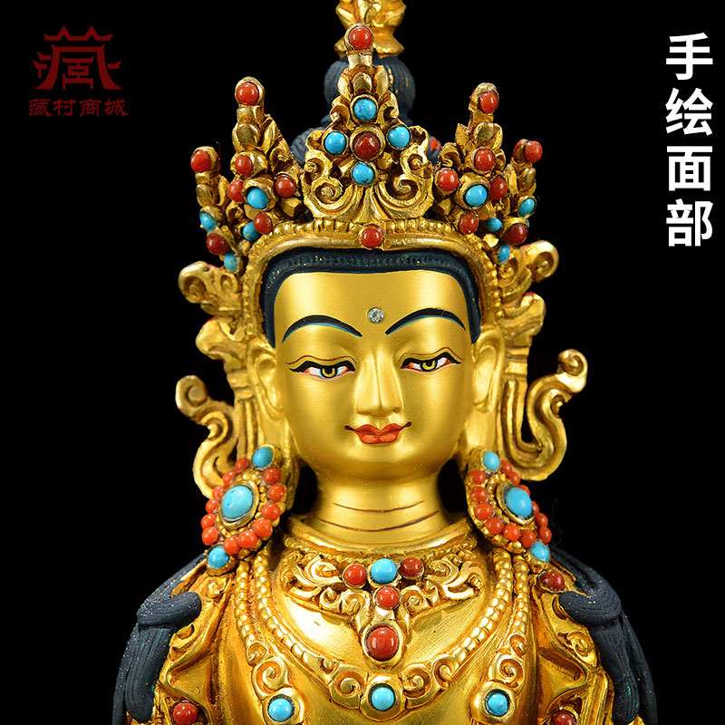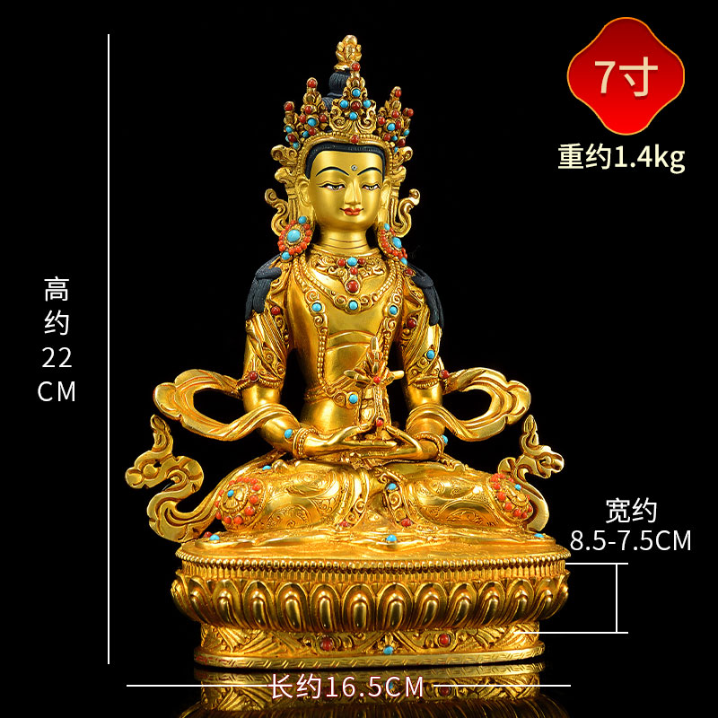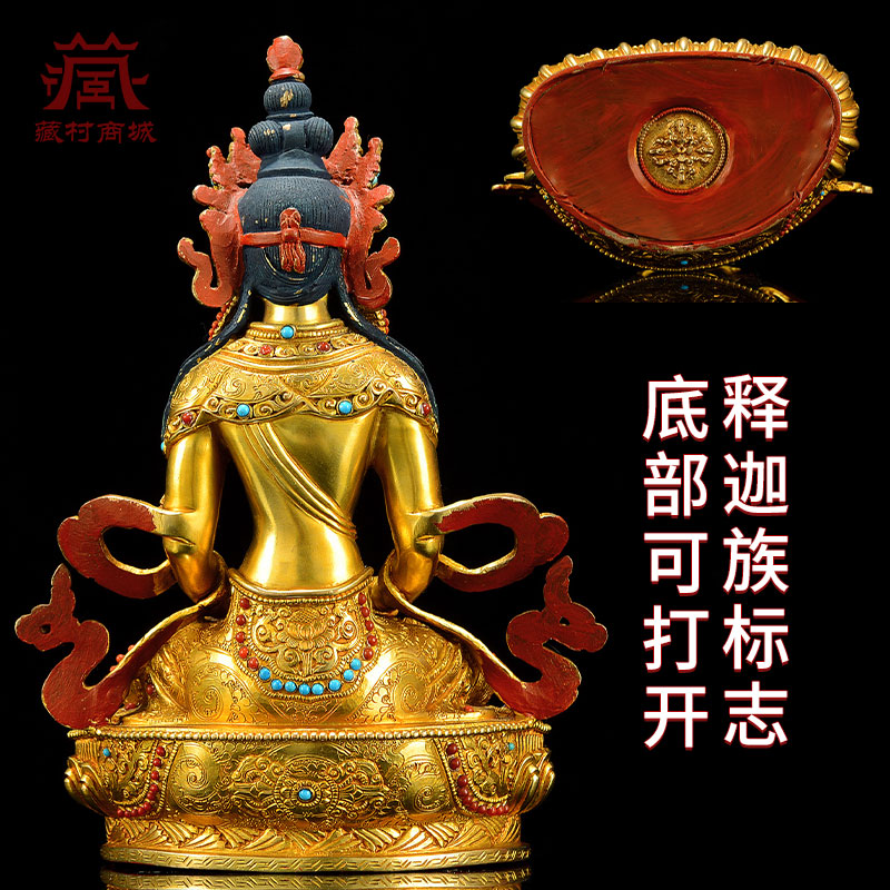 释迦族《常寿佛》全鎏金尼泊尔手工《长寿佛》室内家用铜像摆件