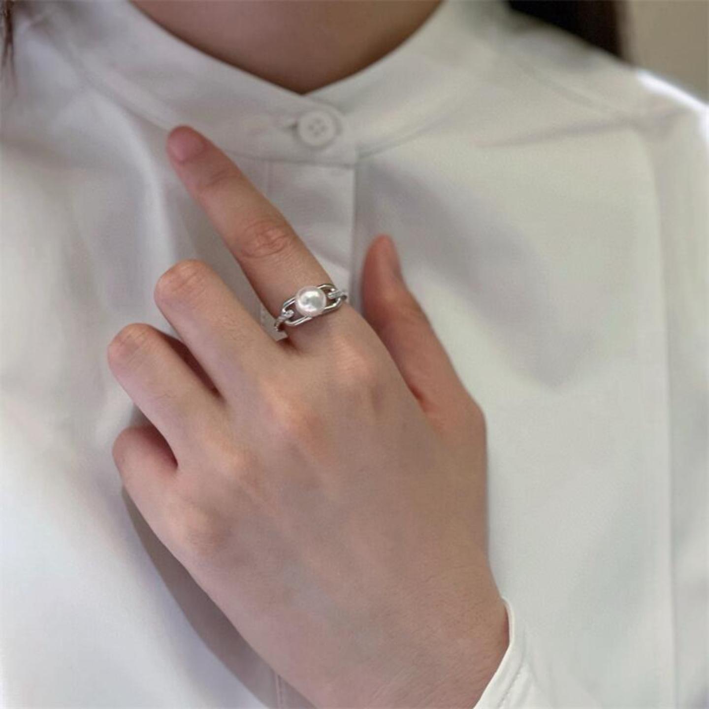 知珍饰品卡家同款珍珠戒指7-8MM淡水珍珠高光小灯泡珍珠时尚指环