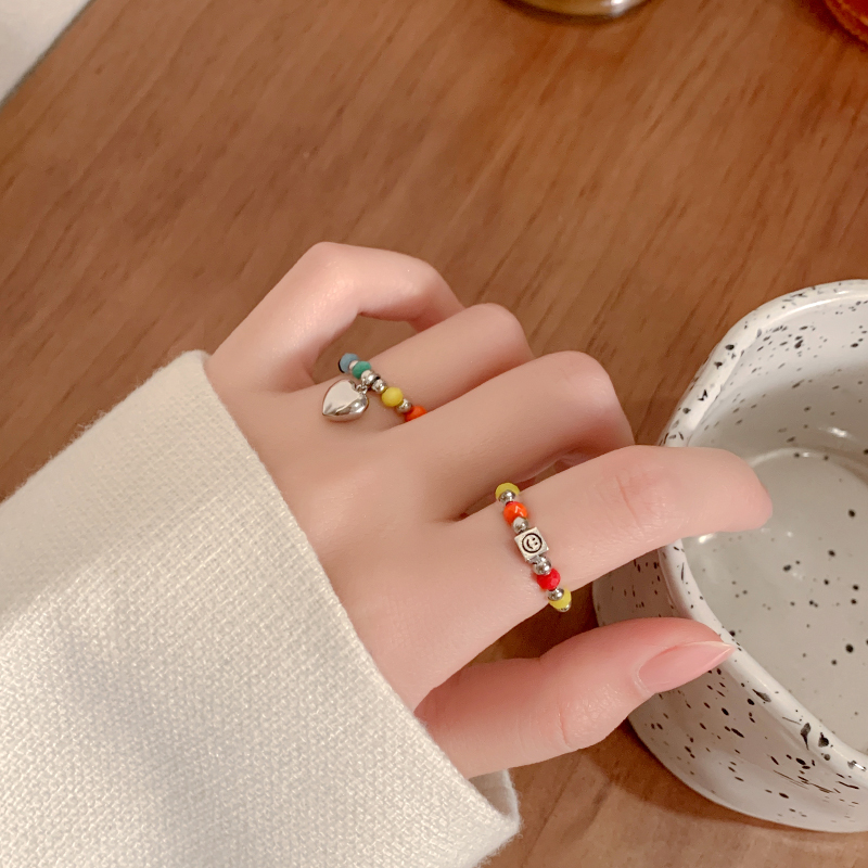多巴胺戒指小众设计个性串珠食指戒时尚彩色可爱指环气质独特配饰