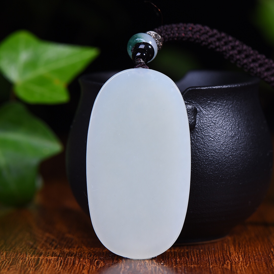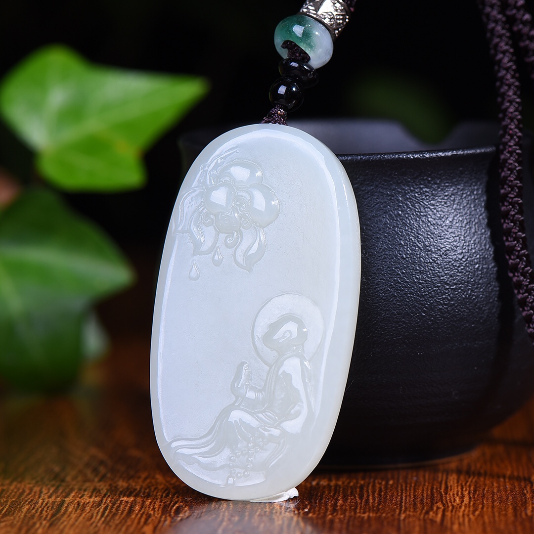 新疆和田玉羊脂玉白玉青白玉莲花佛公平安牌吊坠男女挂件玉坠玉佩