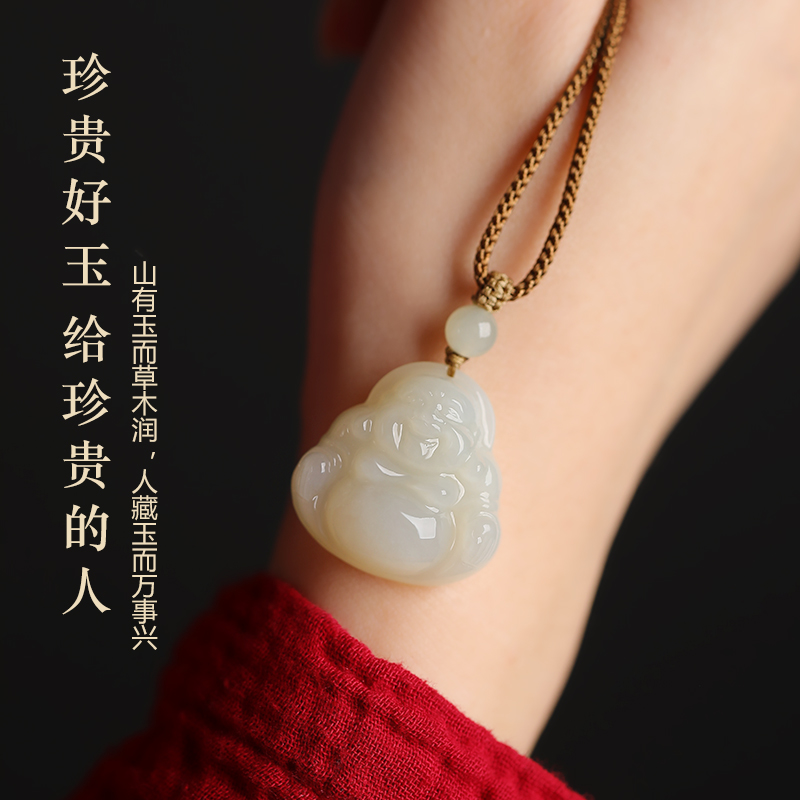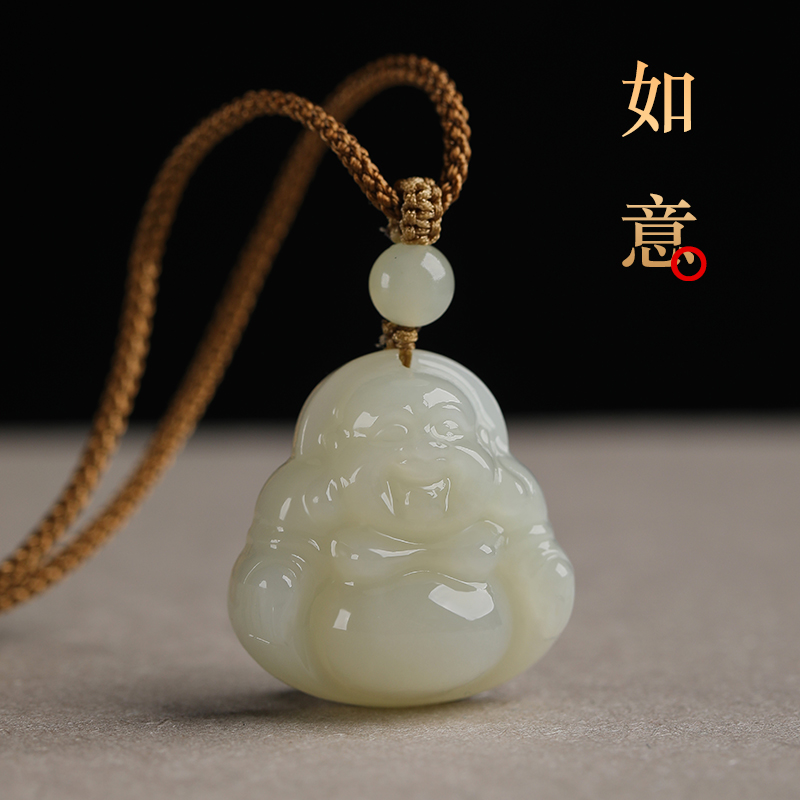 和田玉佛吊坠女玉石小弥勒佛像佛公佛头项链观音菩萨挂件玉佩玉坠