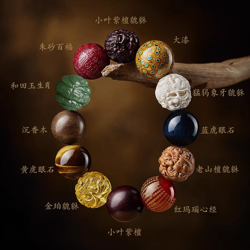 多宝手串男十八籽菩提貔貅和田玉十二生肖小叶紫檀朱砂沉香木手链