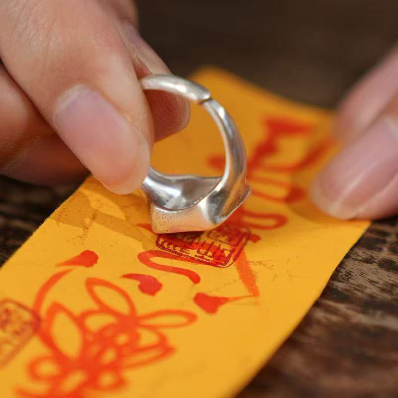 道系青年道经师宝戒指国潮印章开口指环个性复古国风简约手饰配饰