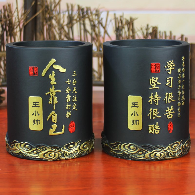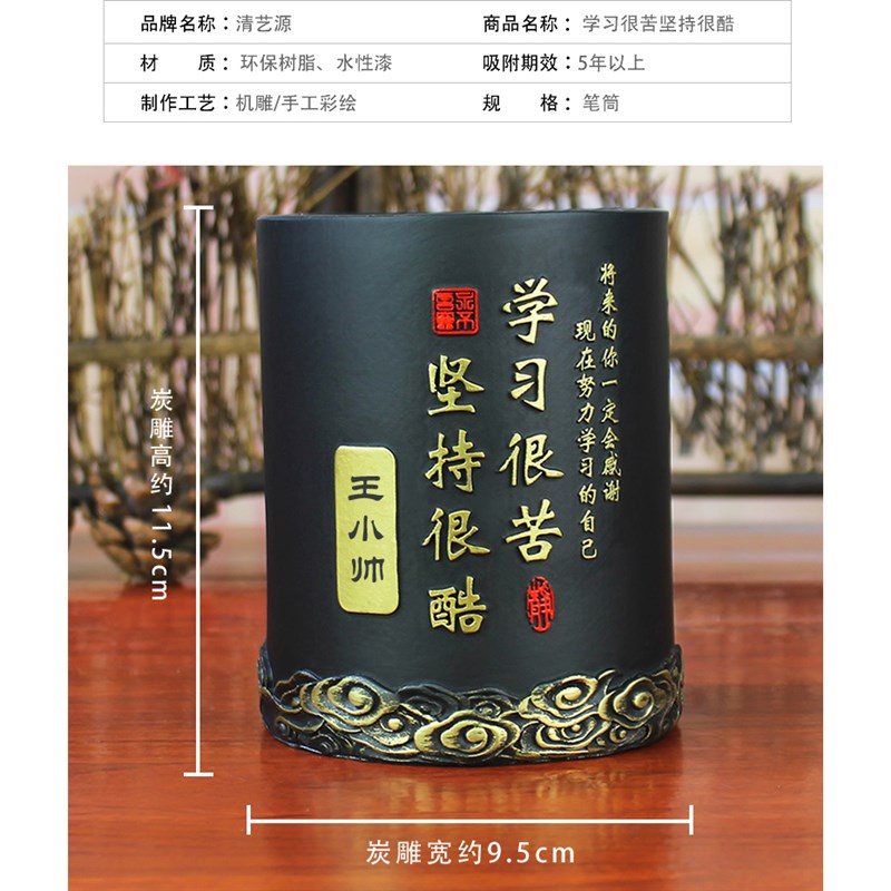 学习很苦坚持很酷笔筒高级感励志摆台学生鼓励儿童孩子书桌面摆件