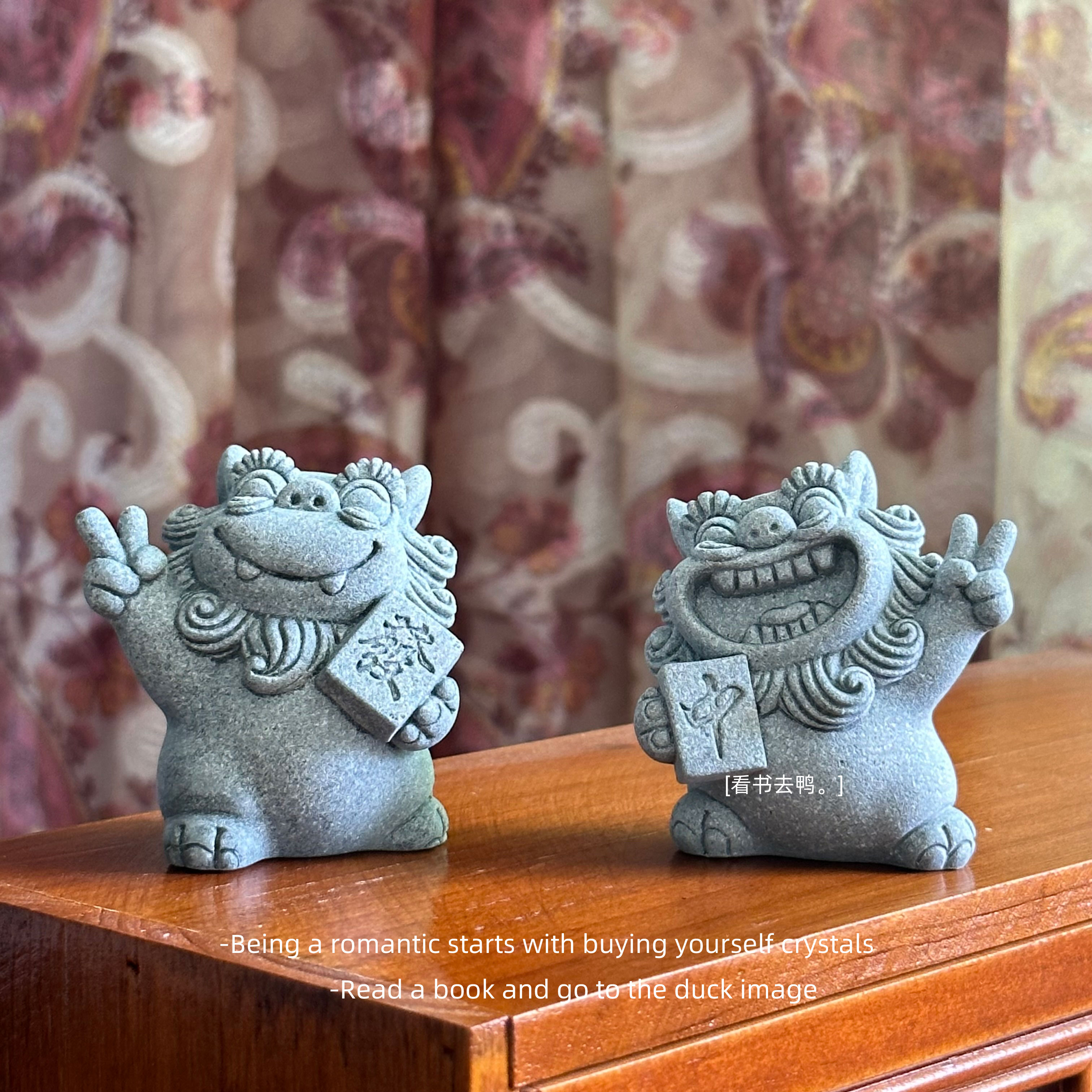 「好运常在 必发必中」国潮小狮子石狮子装饰造景桌面摆件礼物