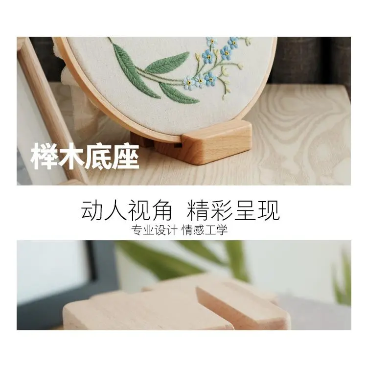 直销 双槽懒人实木手机支架刺绣创意榉木绣绷木质摆件底座