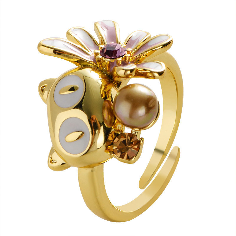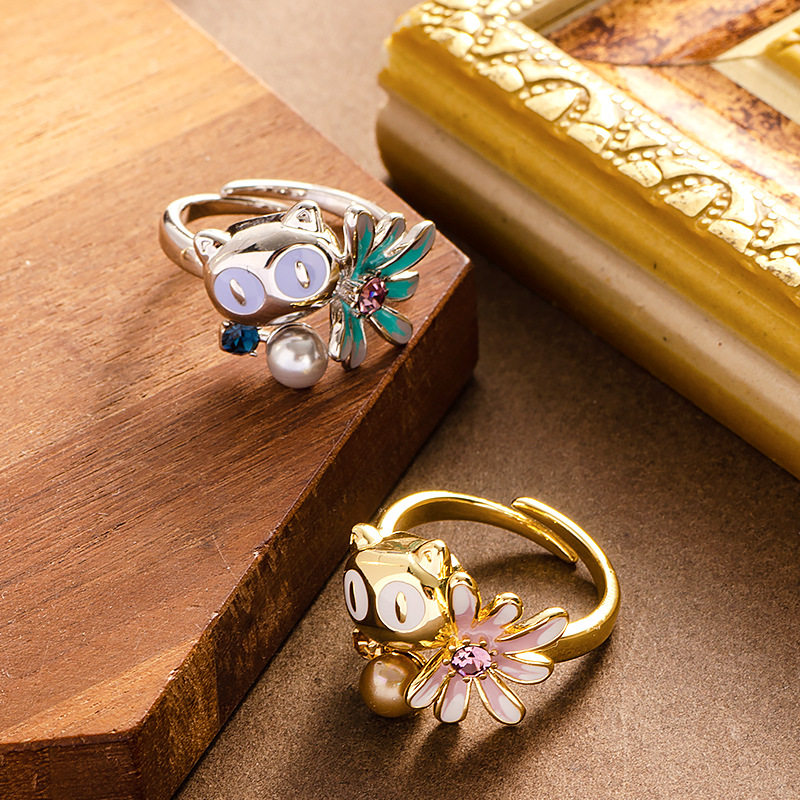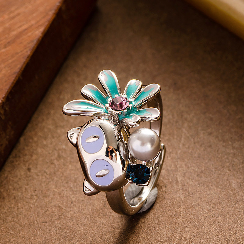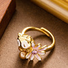 时尚精致镶钻珍珠滴油花卉开口戒指可调节小众高级感不掉色食指
