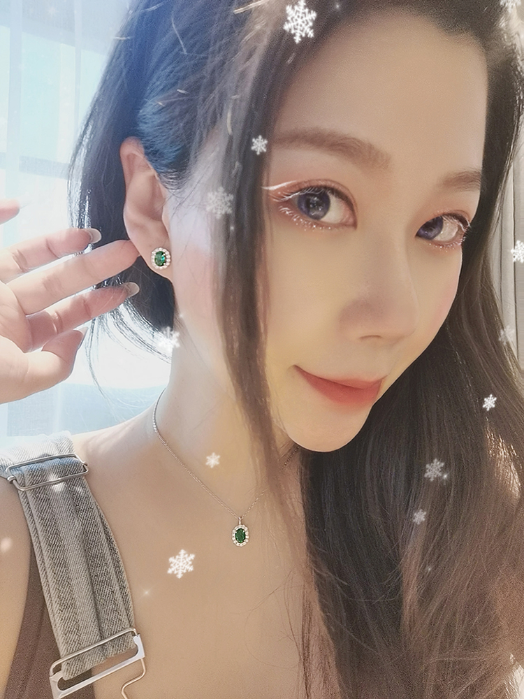 轻奢人工培育祖母绿项链1克拉钻石绿宝石小吊坠锁骨链耳钉女珠宝