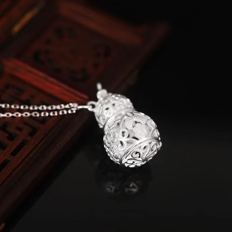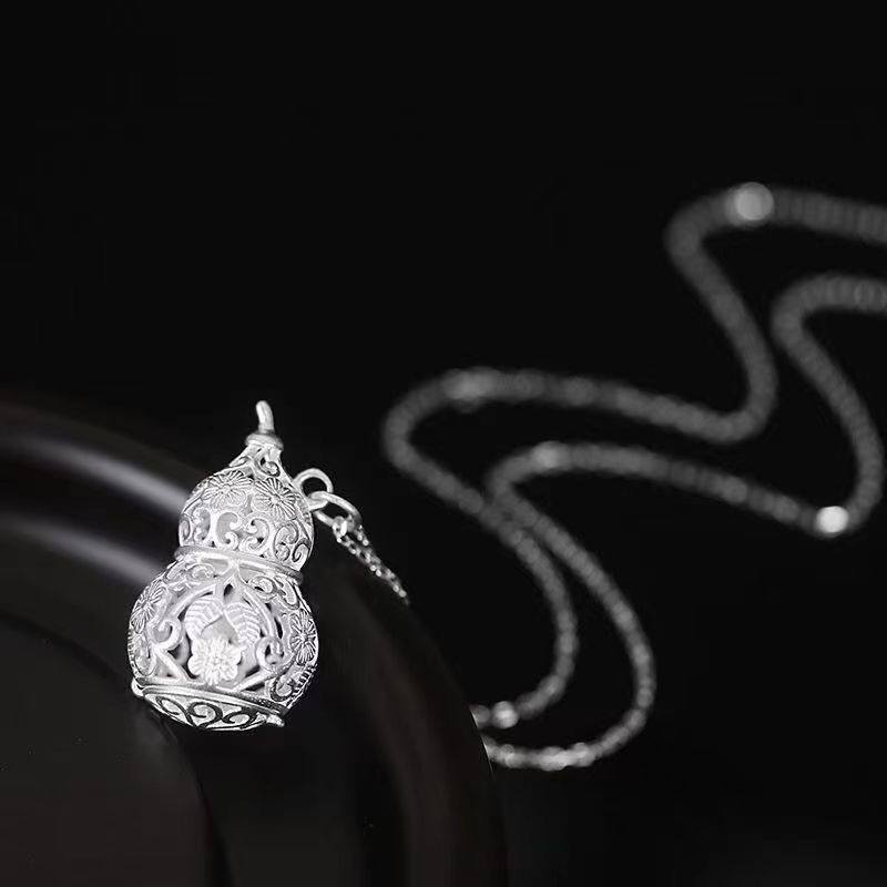 古风香囊球s925纯银项链镂空葫芦花纹镂空香薰球香丸球女挂件吊坠