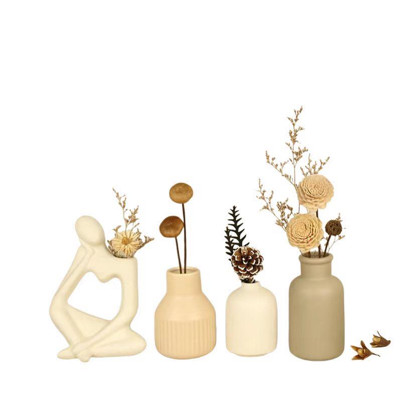北欧风格陶瓷花瓶半手工静物桌面摆件 客厅玄关装饰摆设家居祝福