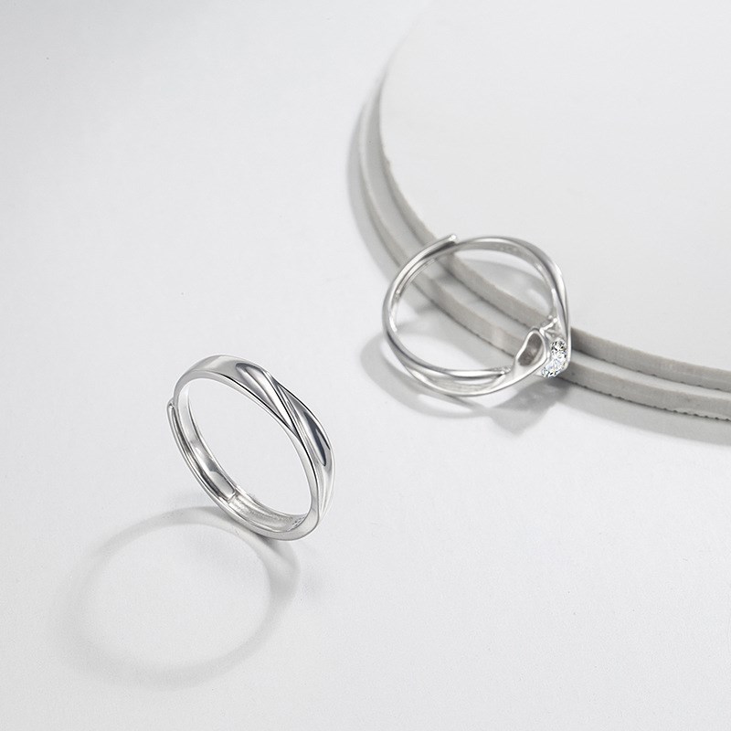 情侣戒指纯银一对女款银对戒小众设计求婚男婚戒开口刻字520礼物
