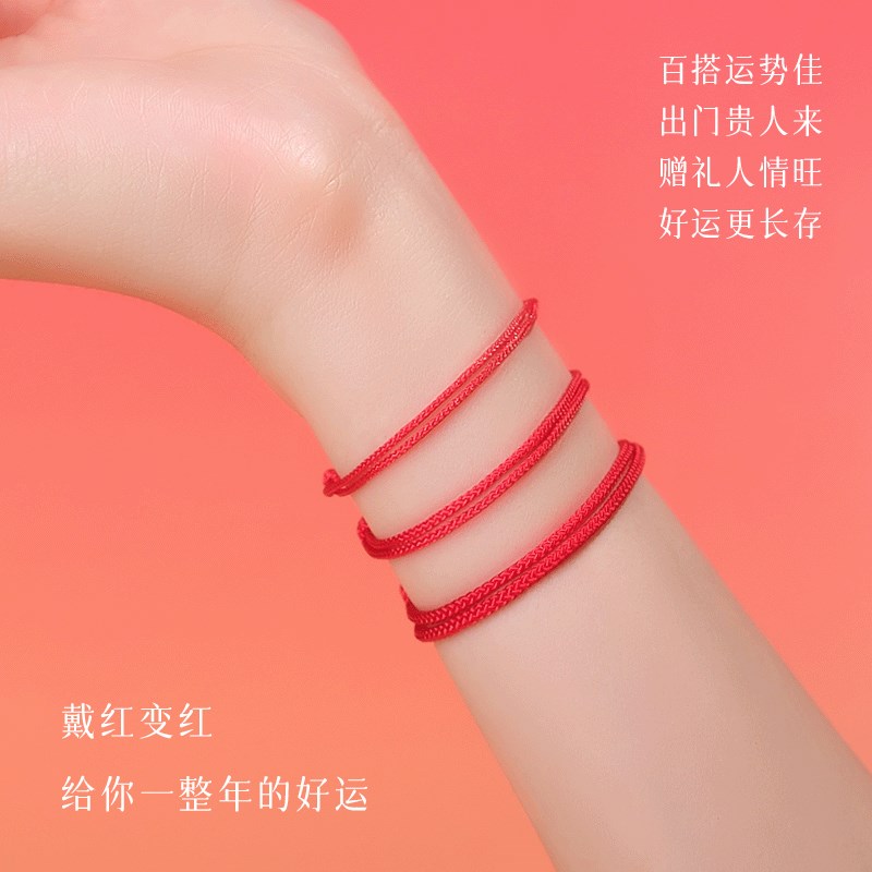 幸运小红绳手g链本命年红色平安极细手绳情侣手链好运转运珠脚链