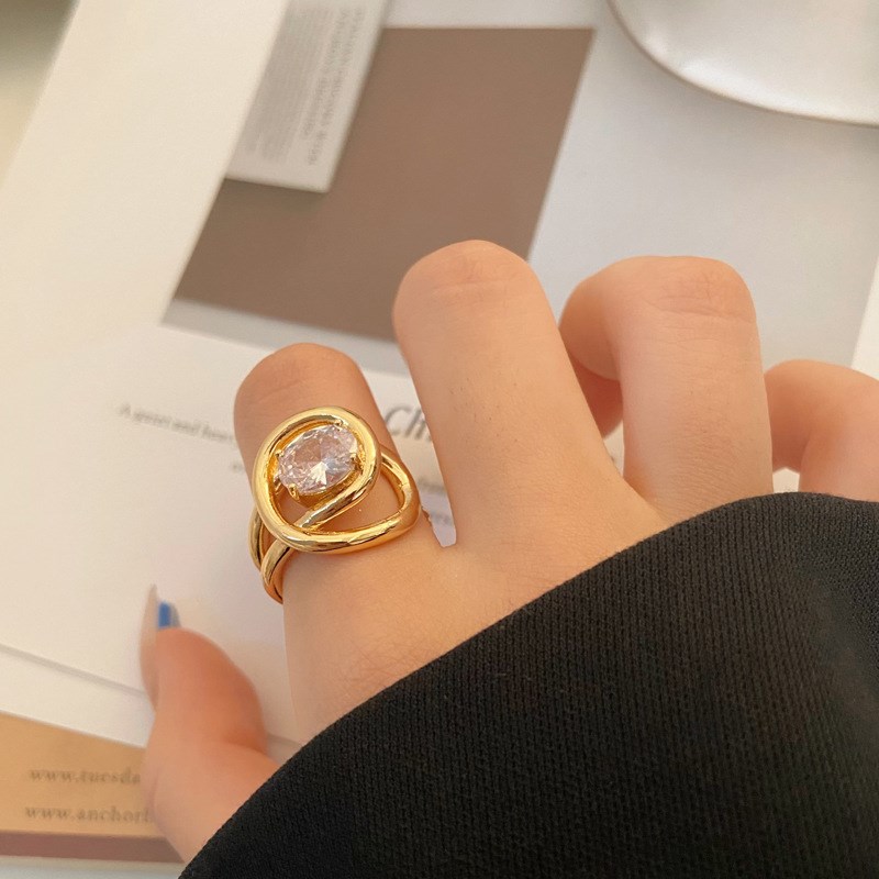 轻奢超闪大锆石几何不规则金y属线条戒指女个性小众高级铜镀真金