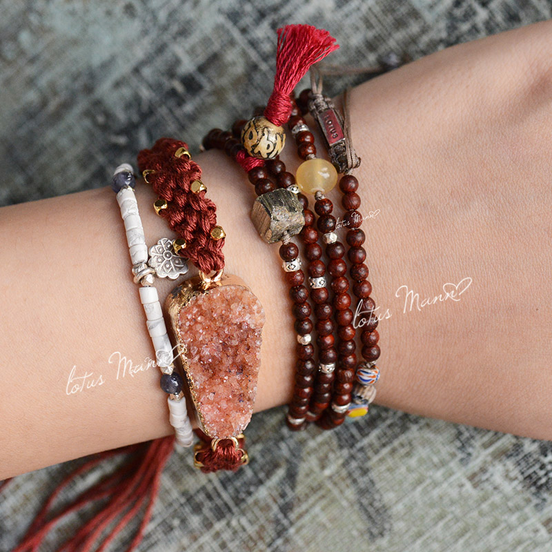 小叶紫檀琉璃珠天然青金石925银老山多元佛珠4圈手串lotus mann