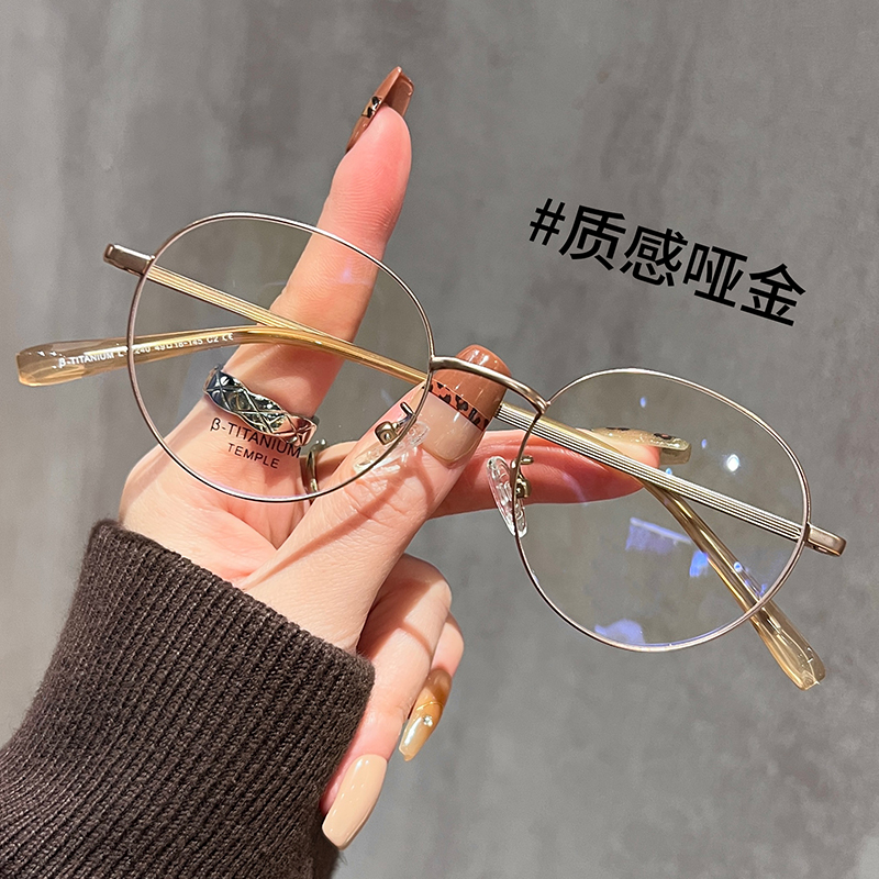 超轻钛架小框眼镜女近视可配高度数素颜神器椭圆形细边框眼睛镜架