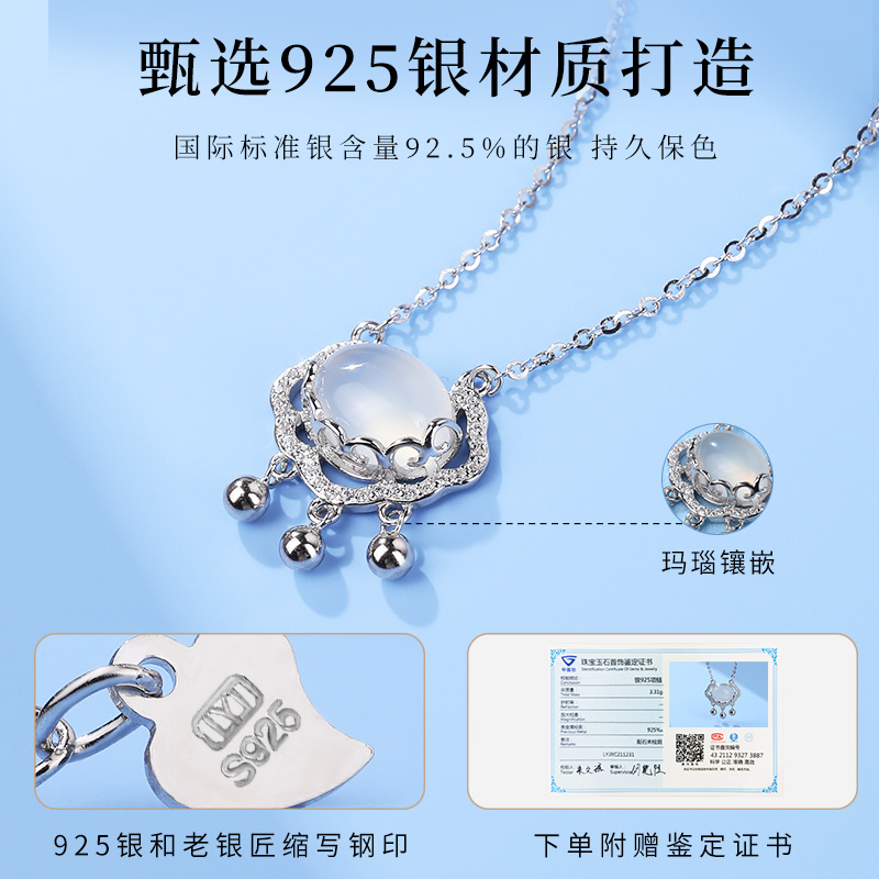 老银匠如意锁s925银项链玛瑙平安锁纯银项链女银中国风素银锁骨链