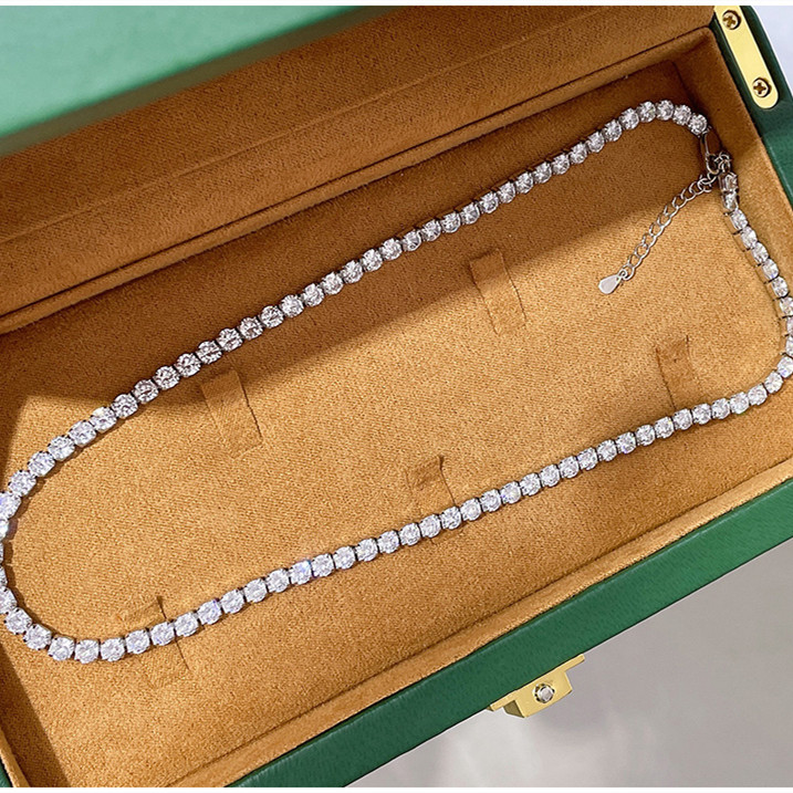 18K白金镶嵌进口莫桑钻单排钻项链欧美女气质欧美项链30分钻情侣