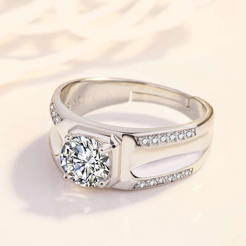仿石钻戒霸气男士银戒指结婚指环男女情侣款戒指