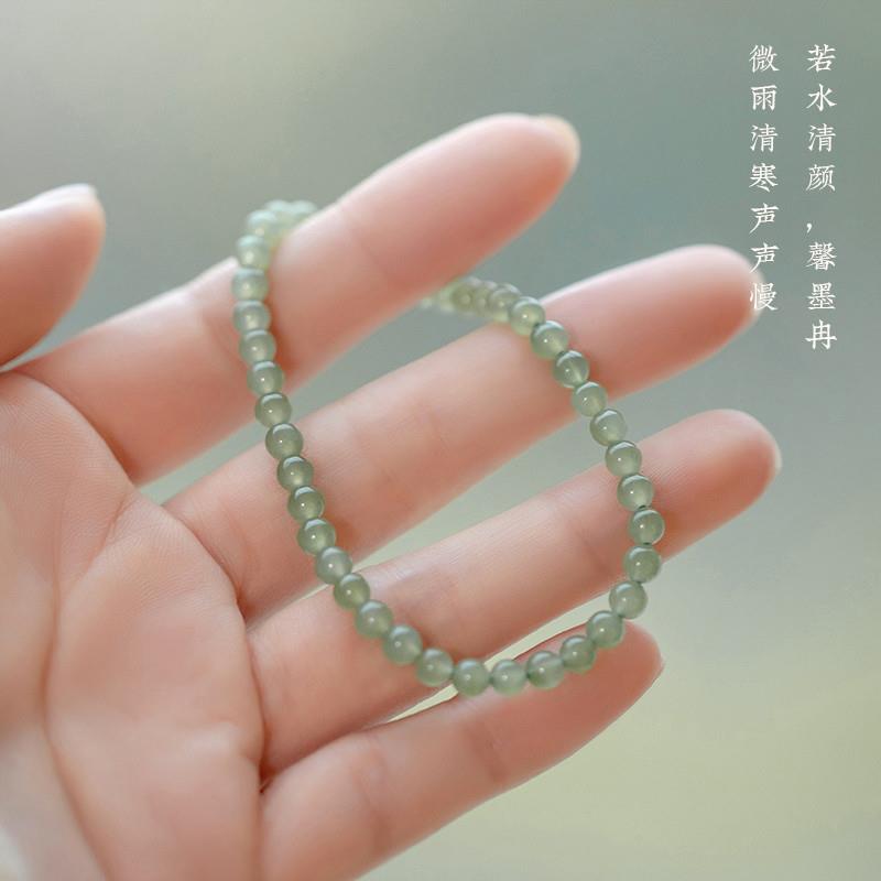 天然和田玉手串女款超细4冰底晴水碧玉手链绿色圆珠转运小米珠