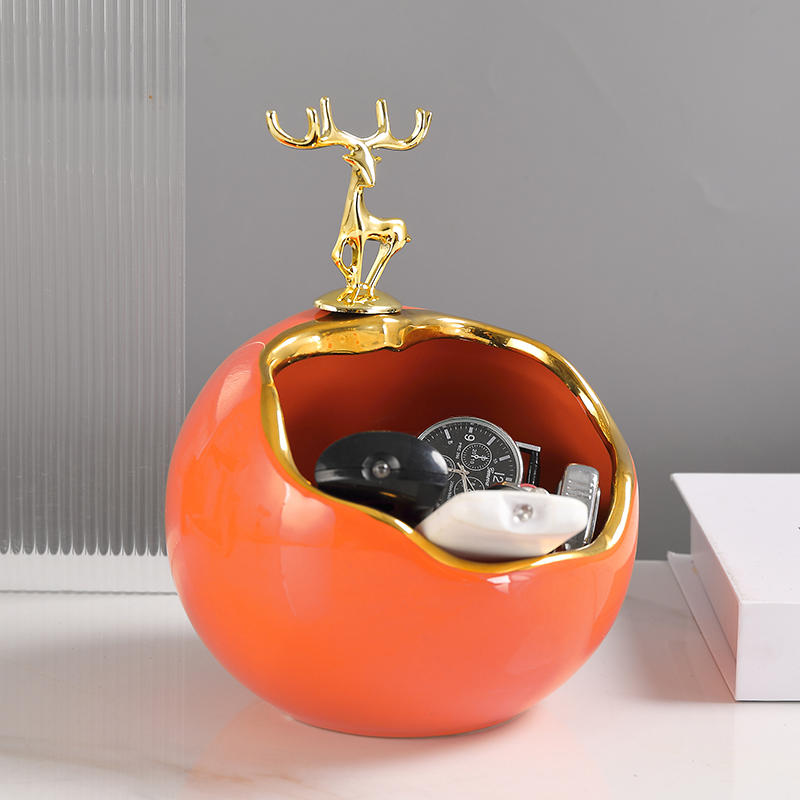 麋鹿钥匙收纳摆件轻奢风现代入户门口玄J关鞋柜家居陶瓷小装饰品