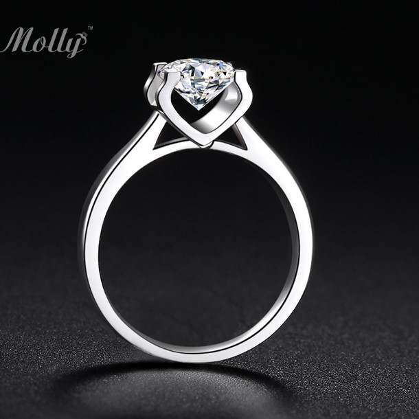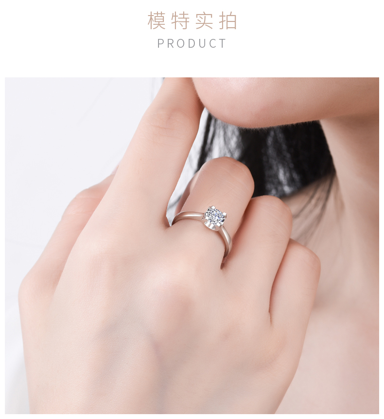 莫桑石戒指女D色18K白金经典牛头四爪1克拉结婚求婚钻戒pt950铂金