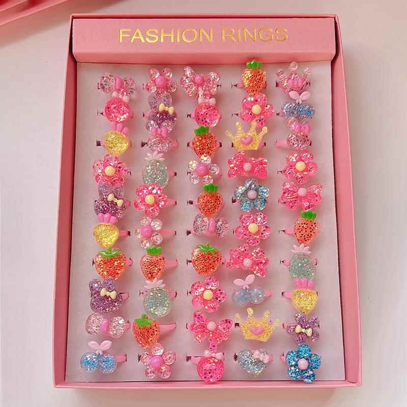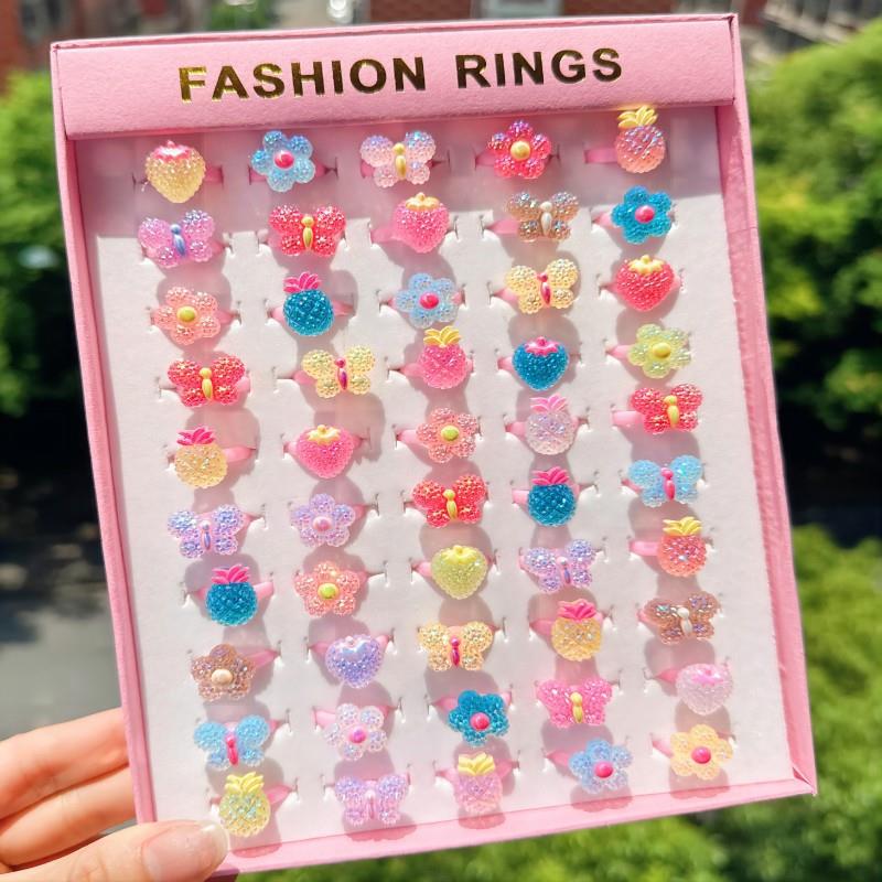 儿童玩具戒指送女孩卡通宝石塑料公主指环生日礼物毕业六一幼儿园