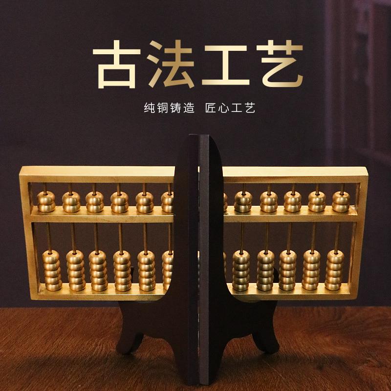 纯铜算盘摆件实心老式算盘客厅店铺开 业办公室桌面工艺礼品摆饰