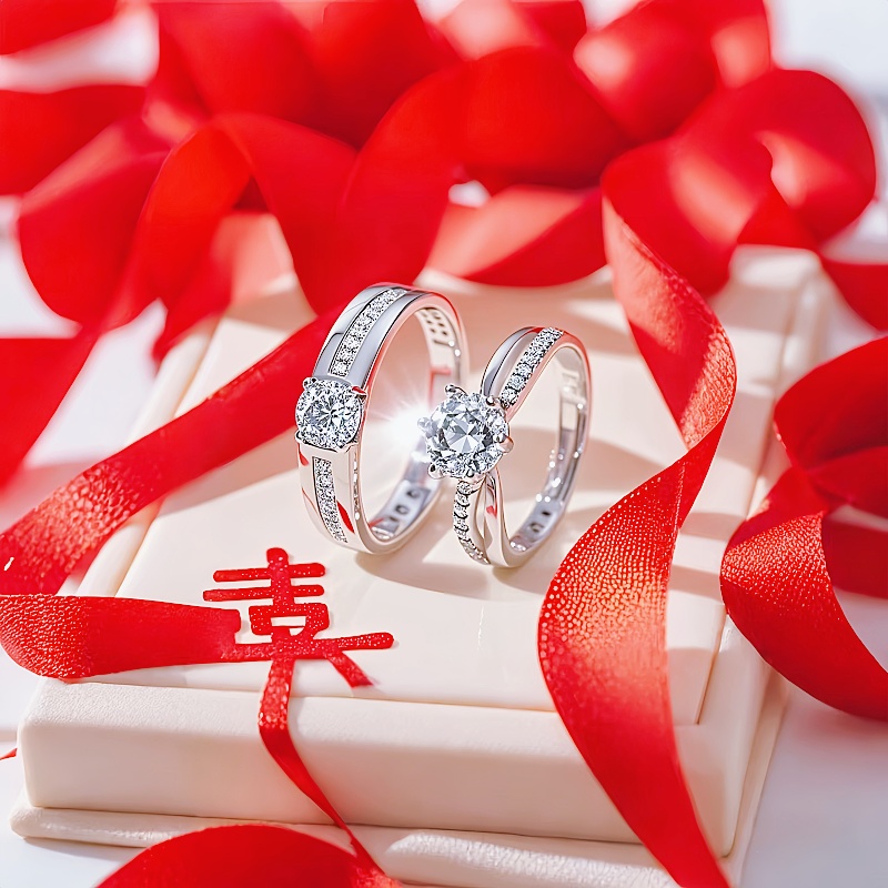 新版仿真婚戒结婚对戒婚礼钻戒情侣戒指求婚告白婚纱照交换仪式用