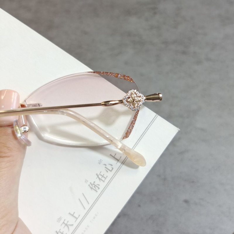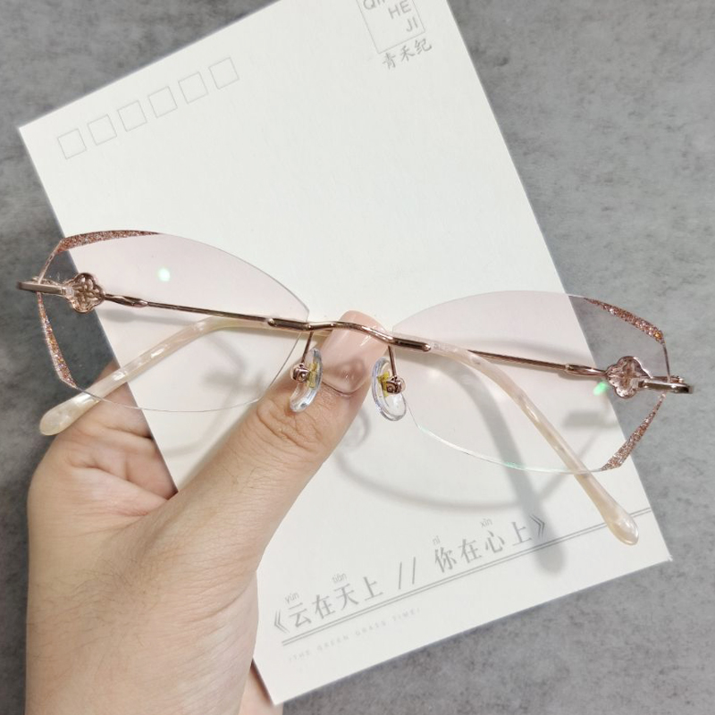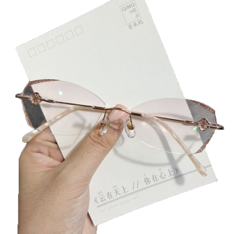 小红书无框眼镜女镶粉钻石切边近视眼镜架配有度数素颜变色眼睛框