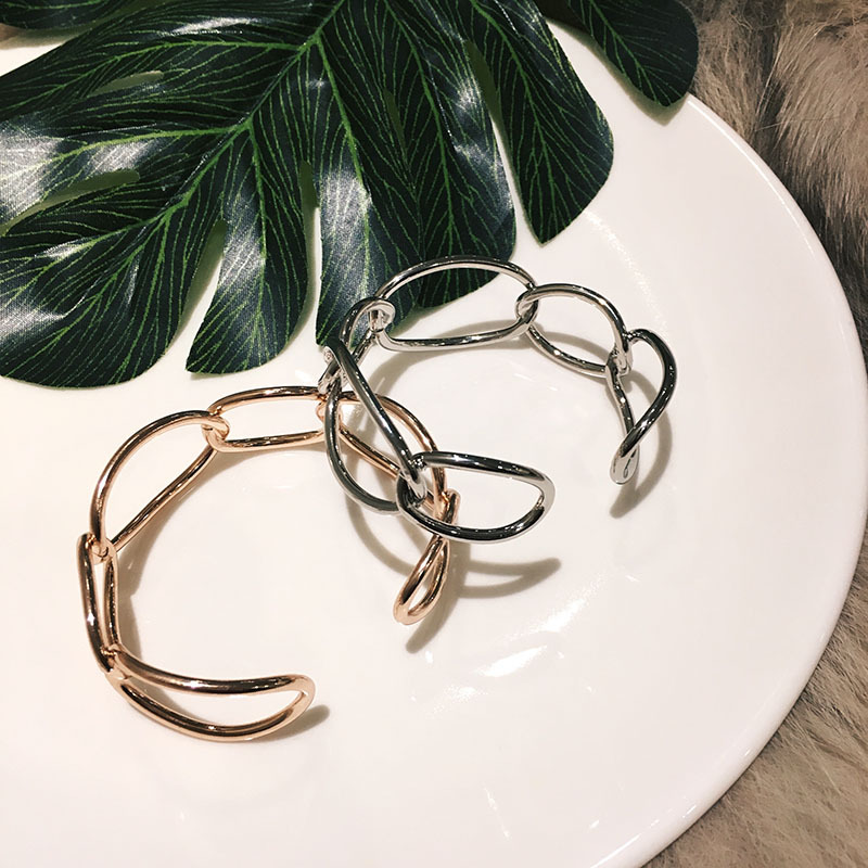 欧美夸张镂空开口手镯女个性连环圆圈手环简约时尚潮人手饰配饰品