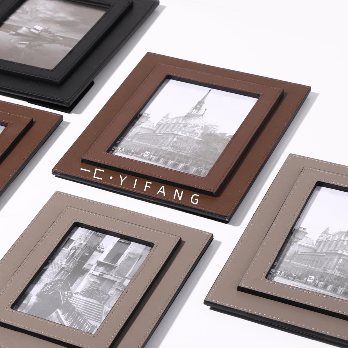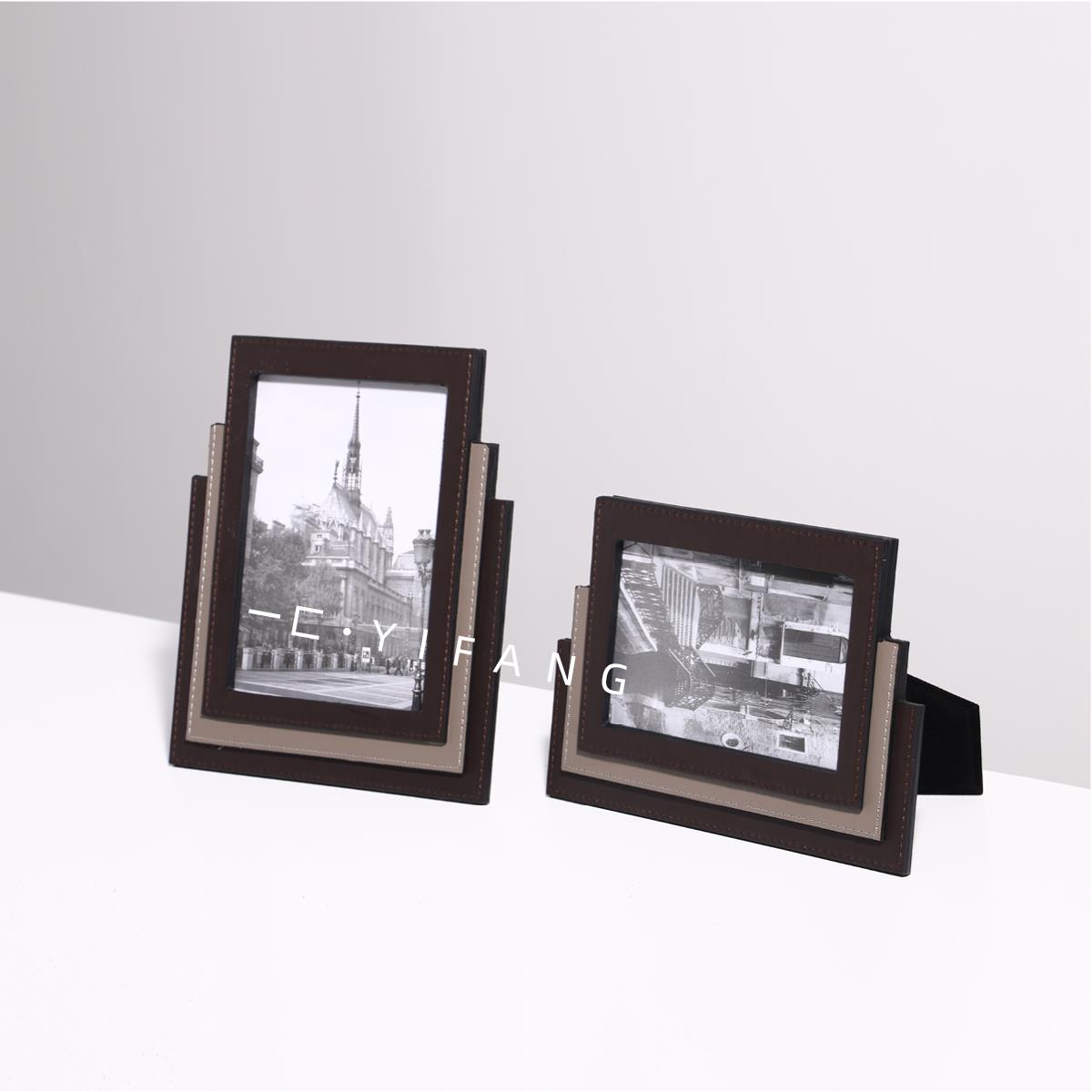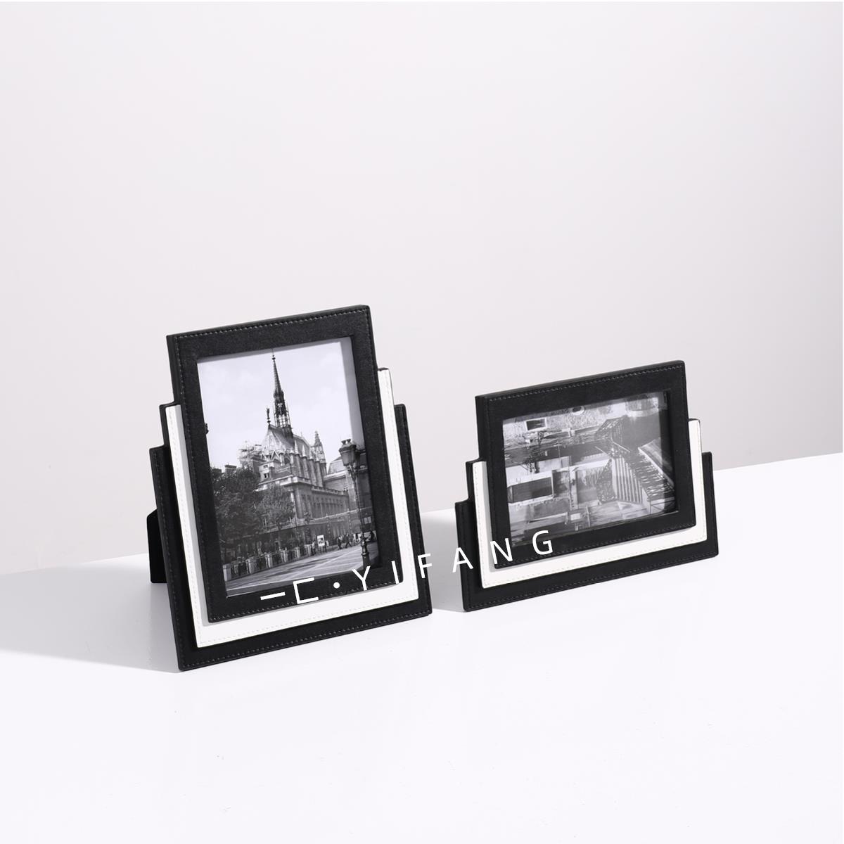 一匚轻奢现代皮革桌面相框样板间酒店民宿家居床头柜书柜装饰摆件