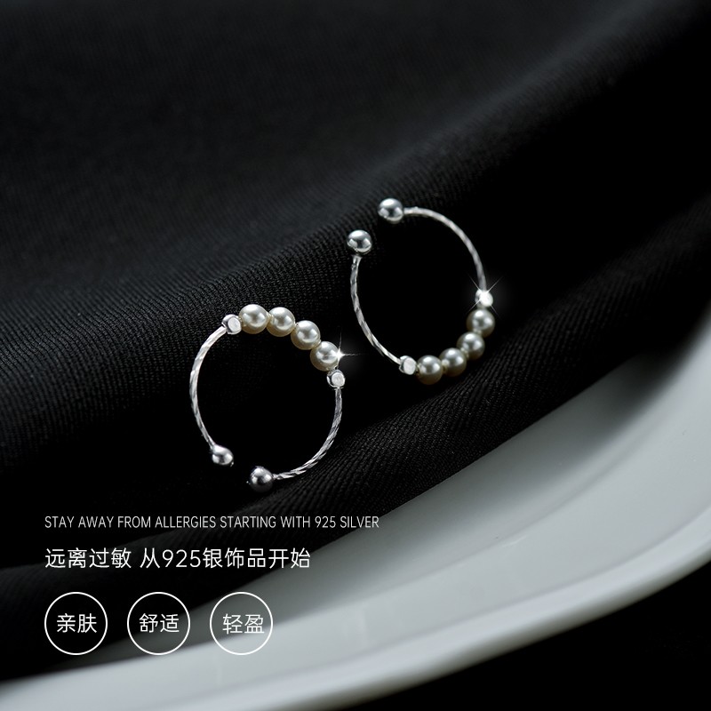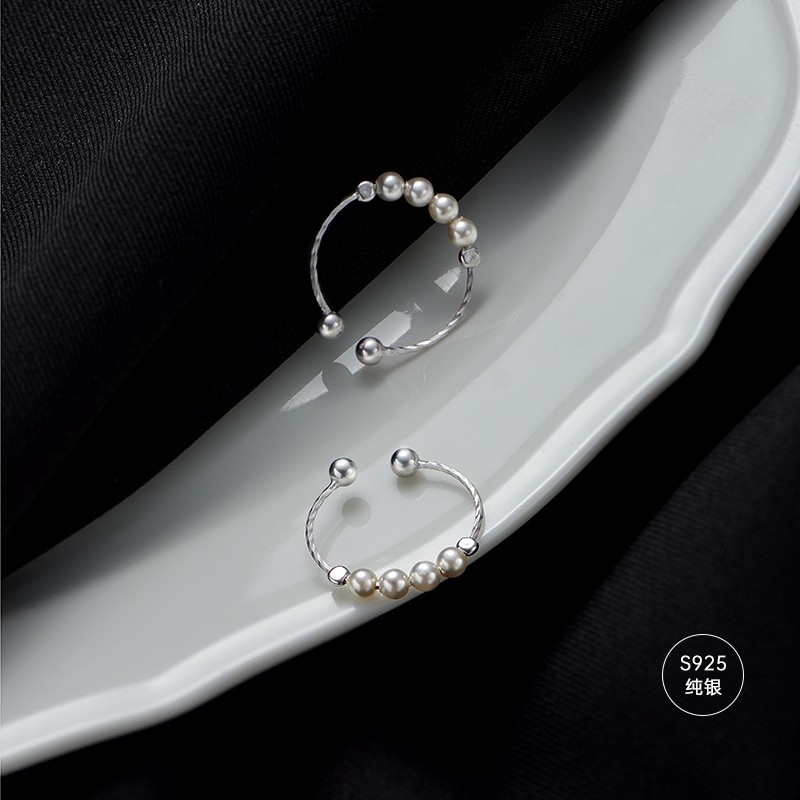 925纯银戒指女小众设计珍珠高级冷淡风复古ins潮食指开口调节尾戒