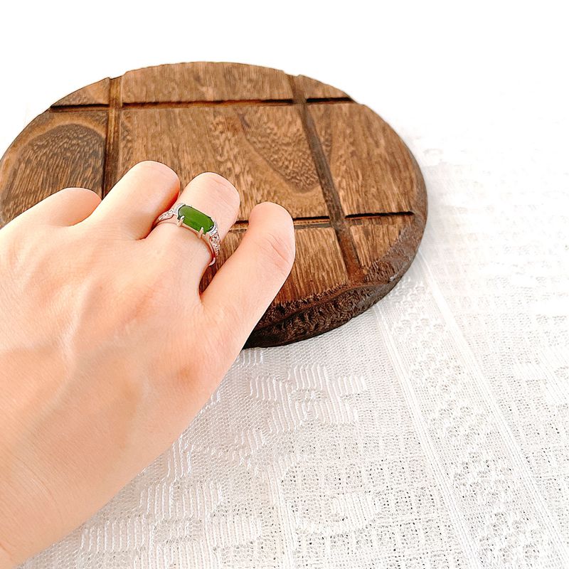 925纯银天然和田玉马鞍碧玉戒指女高级古风可调节指环送妈妈礼物
