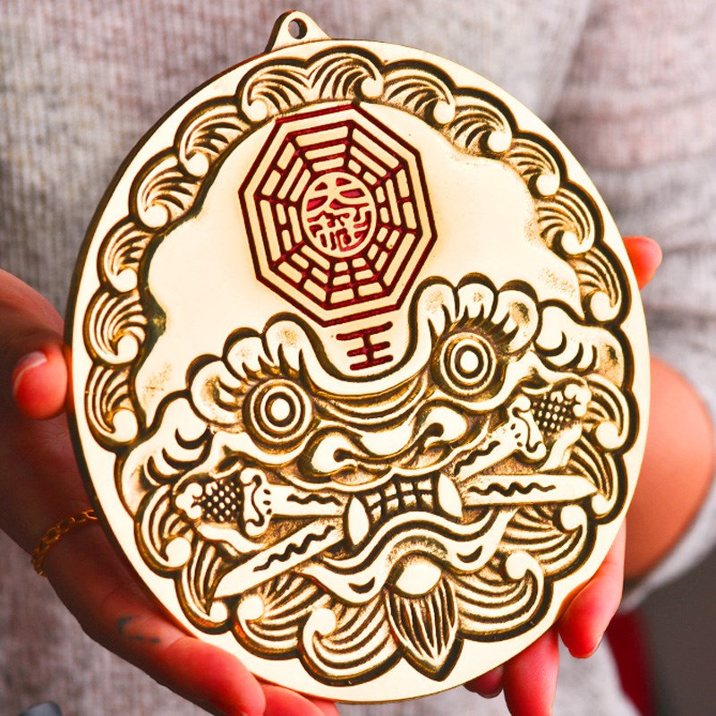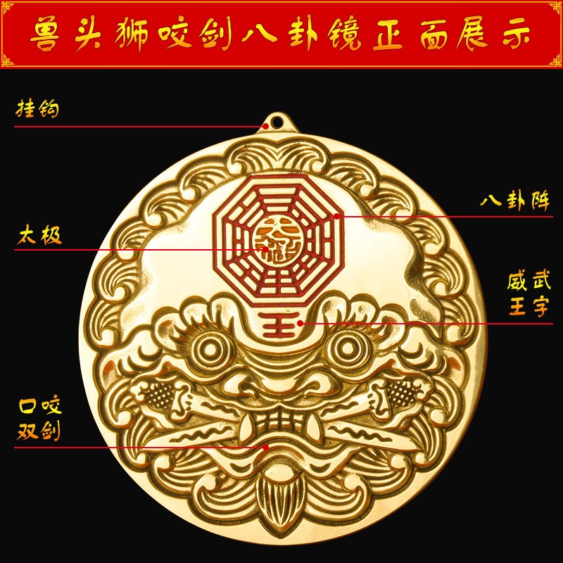 纯铜虎头牌狮咬剑八卦p镜兽头吞口挂件黄铜海神门福门对门家用门