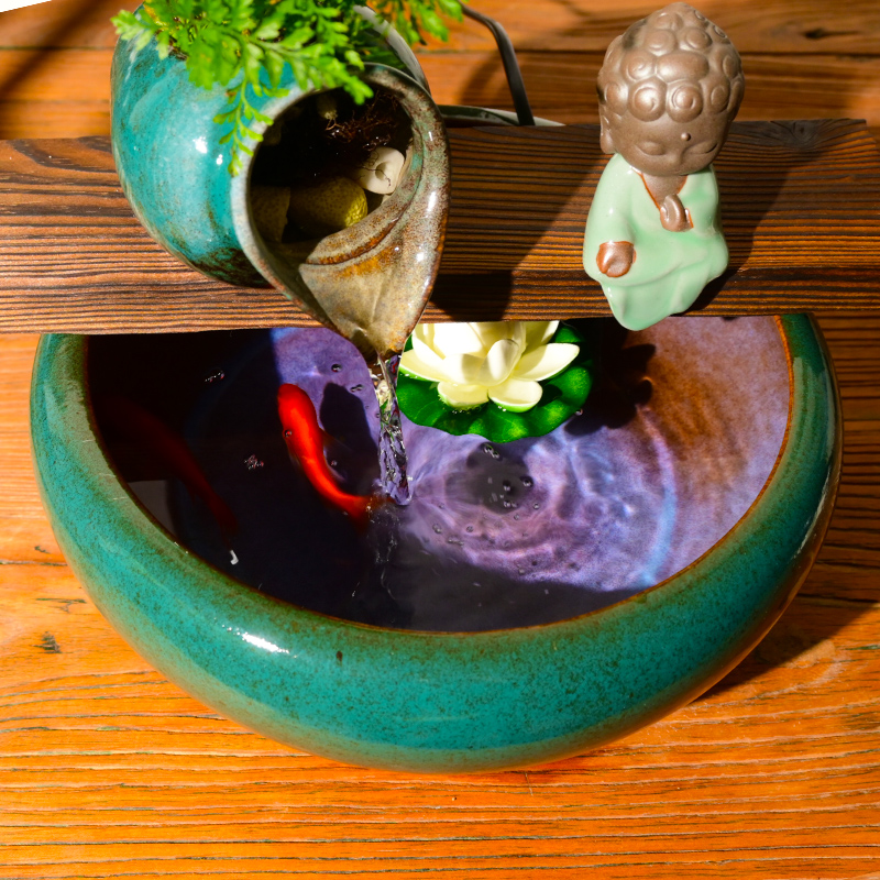 古法养鱼陶罐循环流水器摆件客厅电视柜桌面小鱼缸新中式陶瓷装饰