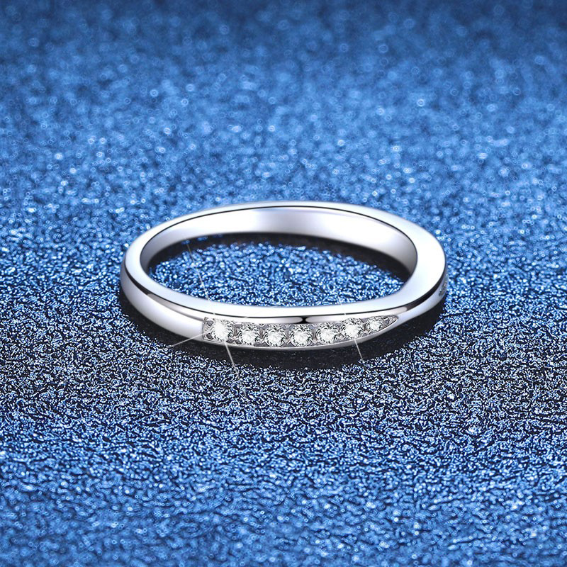 S925银镀18K金PT950铂金戒指时尚韩版小清新莫桑石排戒戒指女指环