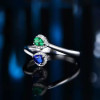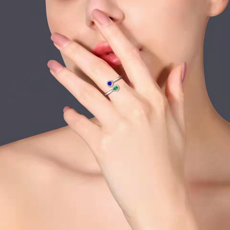 双色祖母绿蓝宝石戒指彩宝梨型水滴女戒奢华高贵S925纯银开口指环