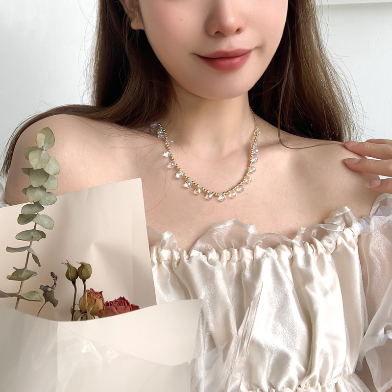 彩色水晶项链女ins轻奢小众设计高级感森系小串珠颈链锁骨链配饰