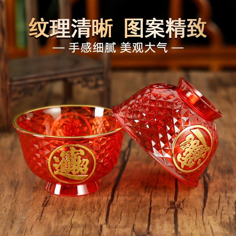 结婚红色小碗塑料拜拜小红碗上供专用碗闽南潮汕财神爷拜神斋菜碗